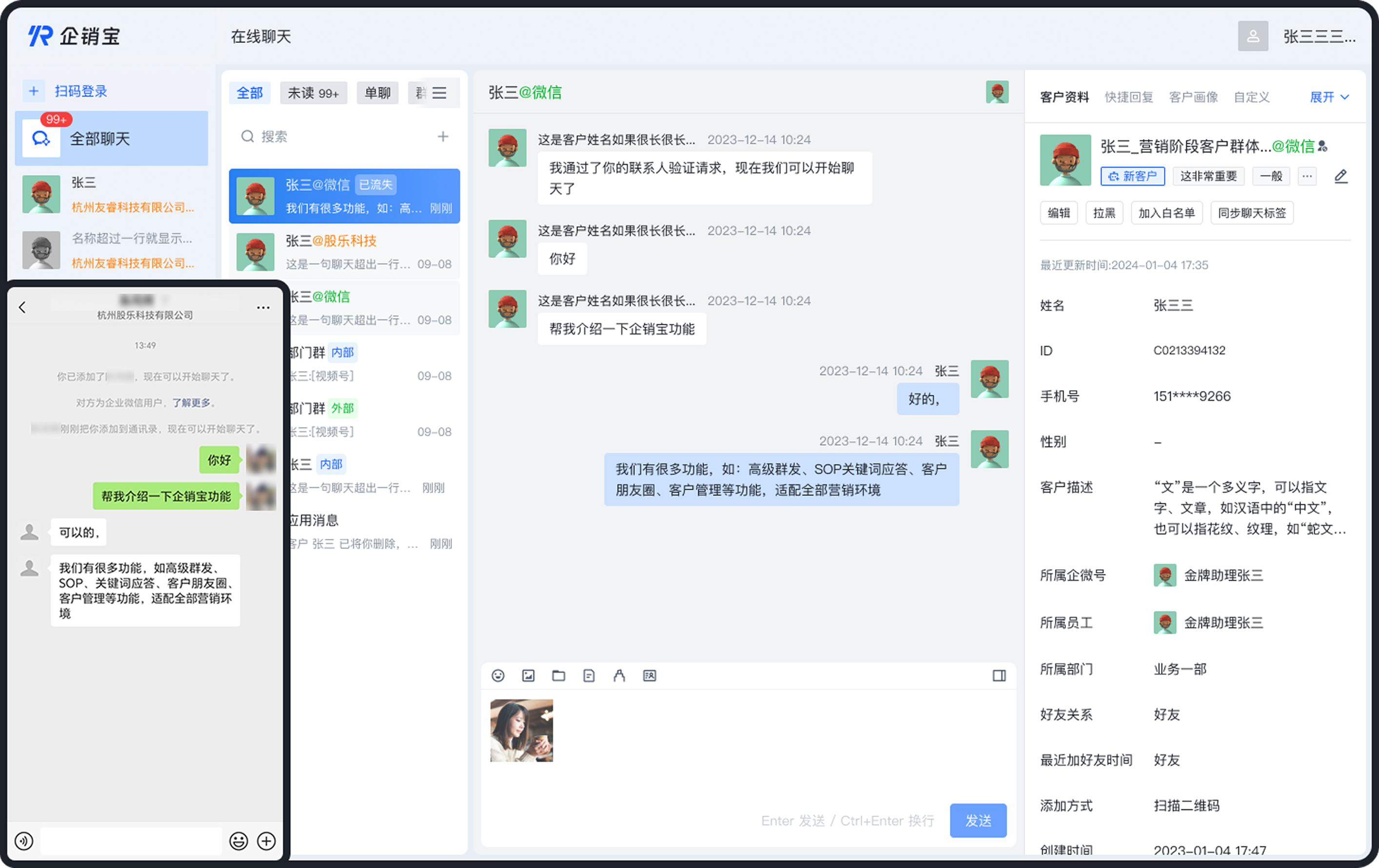 支持多企微号灵活切换,统一接待不混乱;客户信息自动沉淀,标签化管理,让每一次沟通都有迹可循。